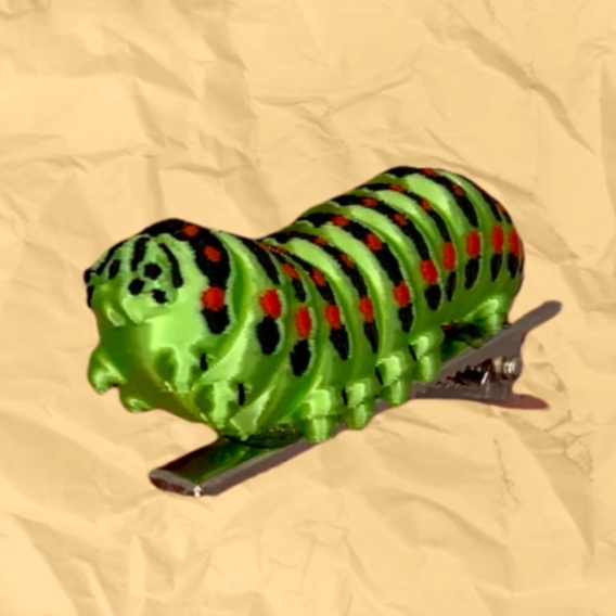 Klips do włosów lub ubrania. Gąsienica pazia królowej. Stały element każdego mojego stroju. Amatorom owadów polecam również naklejkę przedstawiającą tę samą gąsienicę.