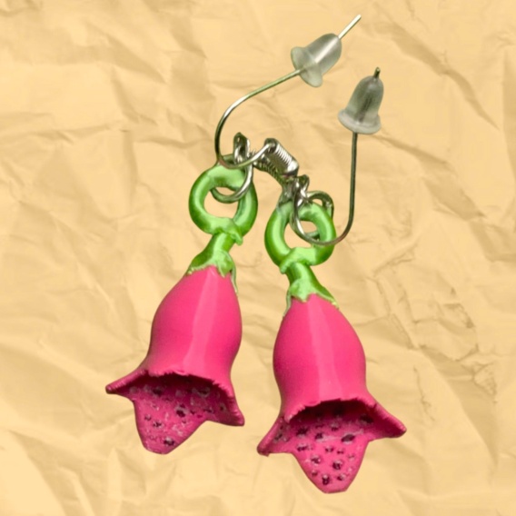 Wydrukowane z PLA kolczyki w kształcie naparstnic.